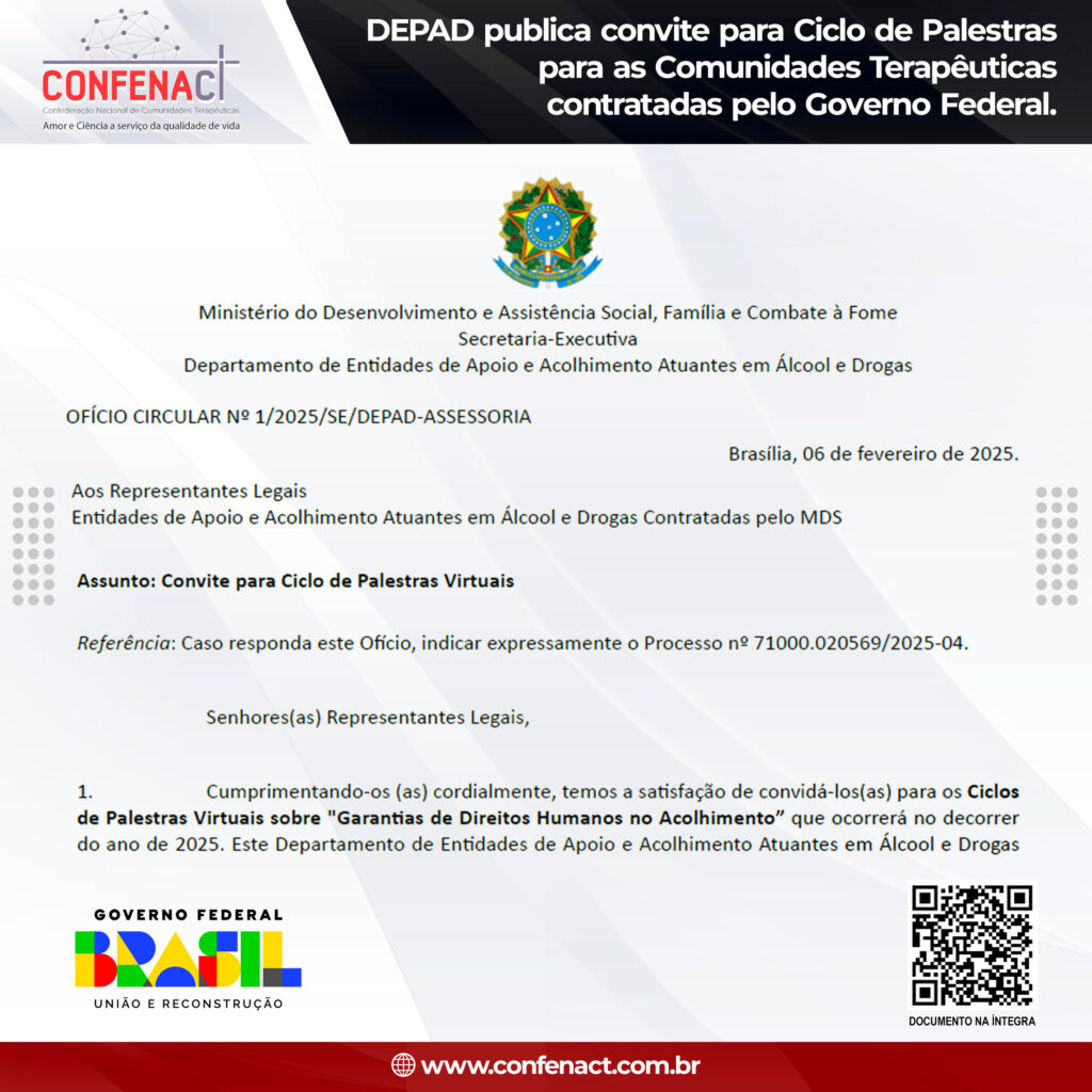 #ComunidadesTerapêuticas #Acolhimento #DireitosHumanos #GovernoFederal #Confenact